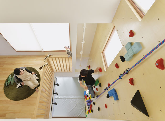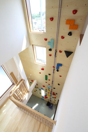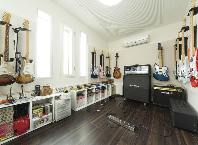 「楽器の練習を思う存分したい」「自宅でボルダリングを楽しみたい」「ロードバイクのメンテナンスができる土間収納が欲しい」。イオスホームには、そんな趣味を持つ施主からの依頼も多く集まる。ギターのコレクションをディスプレイできるスタジオや、1階から3階までのダイナミックなボルダリングウォールなど、多彩で本格的な施工事例がある。土間床にも床暖房を施工できるため、土間収納での作業も快適だ。