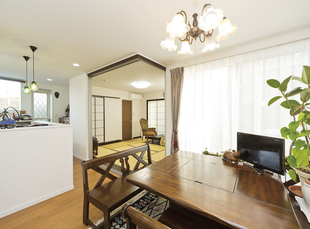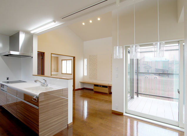 イオスホームでは二世帯住宅の実例も豊富で、全体の約1割ほどが二世帯住宅だ。要望に合わせて玄関や水回りをそれぞれ設けることも、共用とすることもあるが、いずれのケースでも、双方の世帯の意見をバランスよく取り入れて設計に反映している。