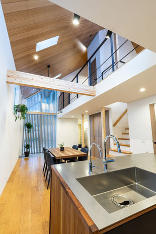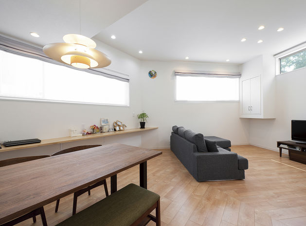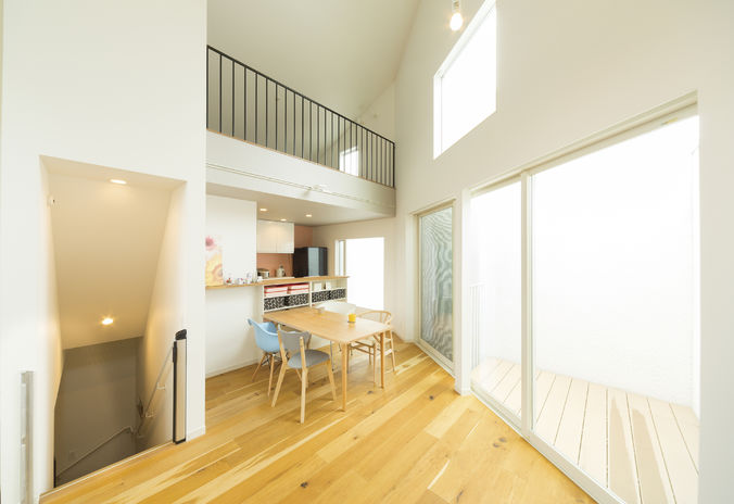 広い敷地を確保することが難しい都市部では、3階建てという選択をする施主も多い。イオスホームでは隣家が迫る住宅密集地でも、明るく開放的な住まいを提案。十分な強度を保ちつつ、しっかりと自然光を取り込む2階リビングや、外からの視線に配慮した開口で快適な暮らしを実現する。
