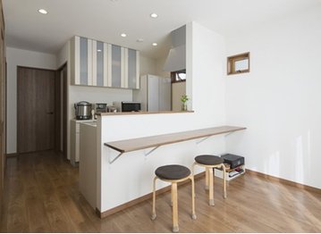 子育て世代、共働き世帯のために、一日のうちの貴重な「家族一緒の時間」を楽しく過ごす提案も得意だ。例えばLDKの中心にキッチンをおくことで、夕食の準備をしながら、デスクコーナーで宿題する子どもとコミュニケーションをとったり、家族で食事の配膳をしたり。また、忙しいオーナーもストレスなく家づくりが進められるよう、メールでもイメージ共有を行うなど、スムーズで迅速なやり取りを心がけている。