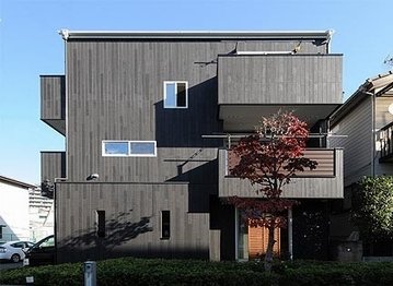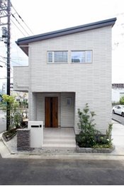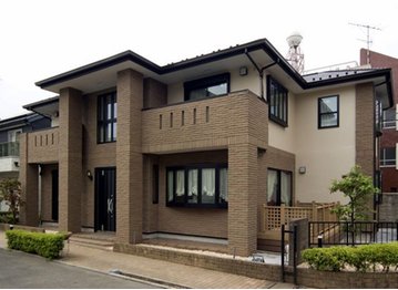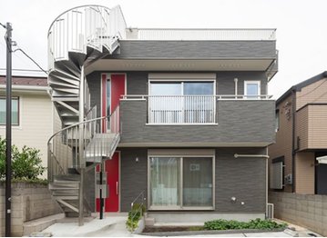 分譲事業やマンションの企画などで、長年街並みをデザインしてきた同社。その経験が注文住宅でも発揮され、街並みに馴染みながらも存在感を放つ外観デザインは得意分野だ。写真(左)は屋上庭園へとつながる螺旋階段と赤いドアが印象的なH邸。Hさんの希望を反映しながら、美しくシックな外観にまとめている。