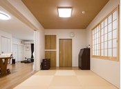 ちょっとごろりと横になりたいときや、子どものお昼寝や遊び場所にも安全で便利な畳スペース。建具で仕切って客間のようにも使えるため、リビング横に希望するオーナーも多い。同社では、フローリングのリビングとも合うフラットな畳コーナーを提案している。半帖畳や木格子なども組み合わせながらつくり上げるスタイリッシュな和モダン空間は、ぜひマネしたいデザインのひとつだ。