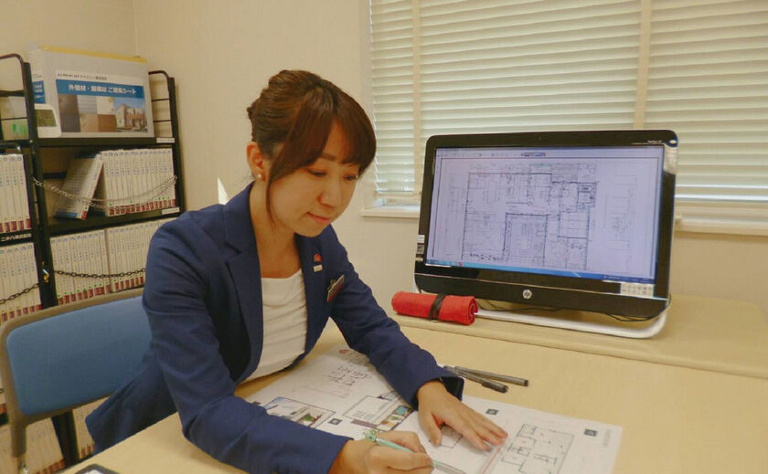 営業(ハウスアドバイザー)や現場監督をはじめ多くのスタッフが携わる中で、お互いが気づけないところをフォローし合い、お施主様の夢を最大限叶えるお手伝いをしています。私は特に女性目線を大切に、家事をする際の不便さの解消やスムーズな動線はもちろん、お客様の目にどう映るかまで配慮したご提案を心がけています。