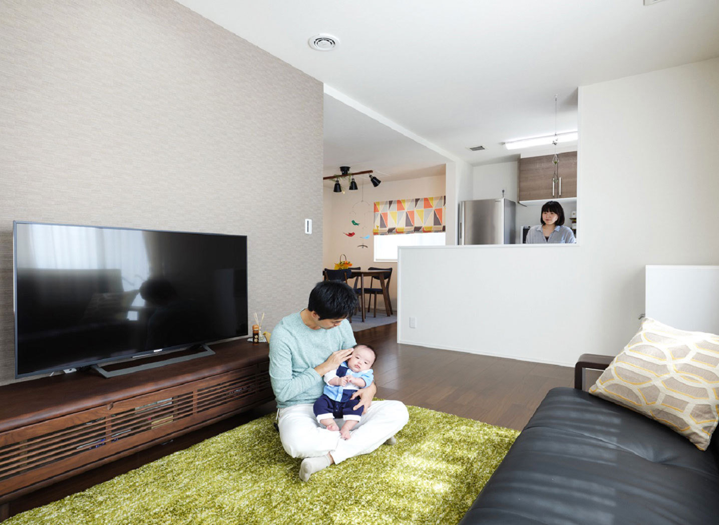 「空気がキレイ」「全室部屋間の温度差が少ない」と住んだ後の施主の納得度も高いアエラホーム。高気密・高断熱・高遮熱住宅だから、赤ちゃんがいても、慌てることなく着替えさせることができるので、子育てがラクになる。さらにキッチンそばのスタディスペースや玄関近くのファミリークローゼット、ベビーカーも入る広々土間玄関など嬉しい子育て応援提案も。